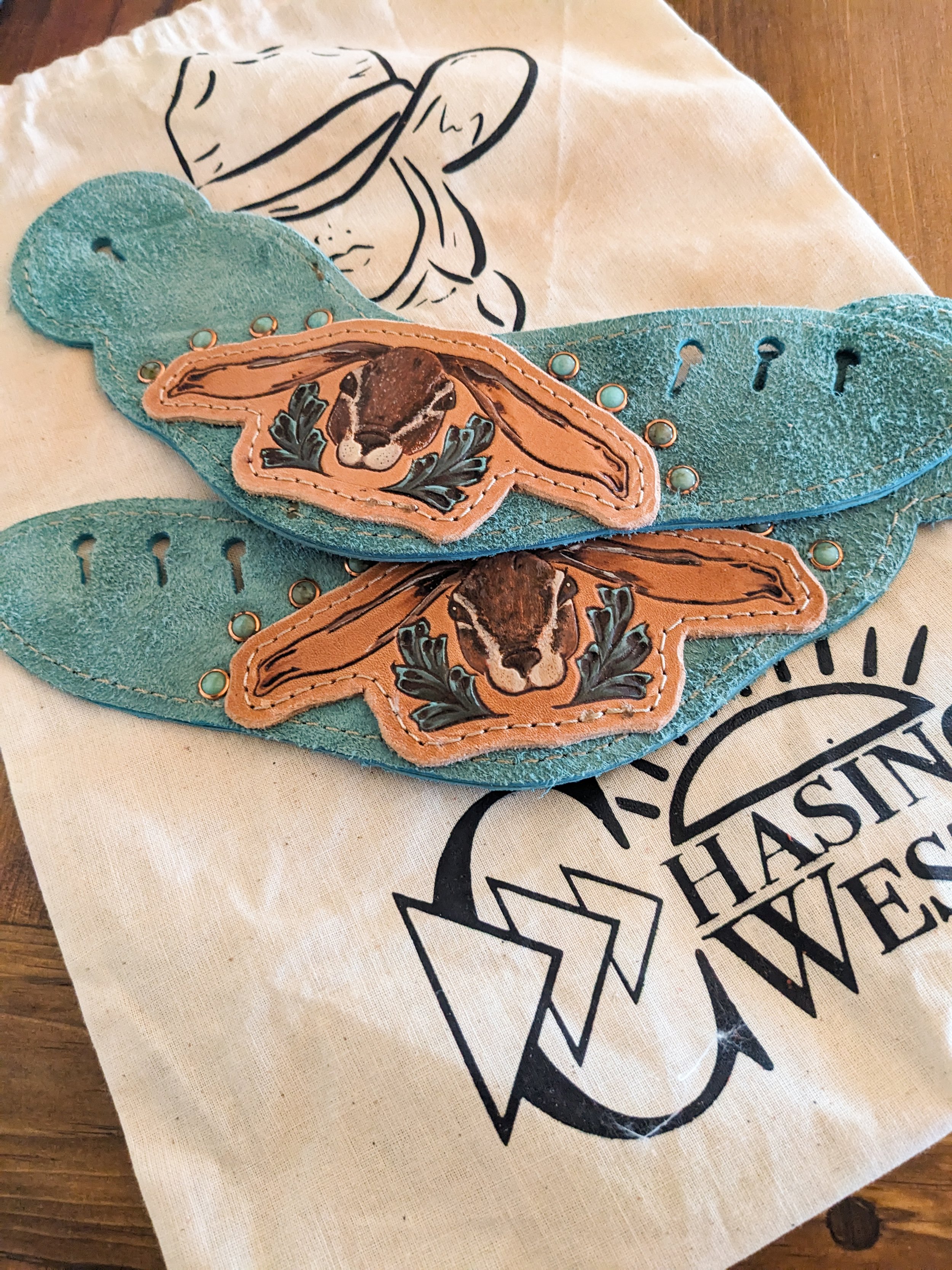 CHASING WEST ISN’T JUST A STATEMENT…IT’S A LIFESTYLE Categories: Select a Category Home and Barn Art Halter Sets Spur Straps Headstalls Tack Sets Ranchin Shirts Wearable Leather Art Shop Home and Barn Art | Halter Sets | Spur Straps | Headstalls | Tack Sets | Ranchin Shirts | Wearable Leather Art | A Pair of Rabbits Spur Straps $110.00 Fertile Ground Steer Skull art $855.00 Prickly Pear Paddles & Jackrabbit Tin $35.00 Prickly Pear in Bloom Tin $35.00 Little Steer Tin $35.00 Jackrabbit Dreams Hanging Art $55.00 Sold out Desert Wanders Spur Straps $165.00 Something Old, Something New & Something Blue Spur Straps $165.00 Simple Chaos Tie Dye Split Ear Headstall $165.00 Armadillo Day Trip Headstall $175.00 Tres Hearts Spur Straps $90.00 Shadow Chasers Split Ear Headstall Sale Price: $220.00 Original Price: $255.00 Sale Texas Trippin Spur Straps $165.00 Sold out Pearl Snaps & Prairie Critters Split Ear Headstall $255.00 Sold out Long Daze & Lariats Split Ear Headstall $260.00 Jackrabbit Folklore Split Ear Headstall $250.00 Ocean Salt & Trail Dust Split Ear Headstall $250.00 Sold out Jackrabbits into Tumbleweeds Split Ear Headstall $255.00 Sold out Riding Out the Storms Split Ear Headstall $255.00 Sold out Feels Like Home Lariat Halter $230.00 Sold out Sage and Embers Headstall $165.00 Sold out Sun Baked Pines Headstall $140.00 Black Cherry Ice Cream Headstall $135.00 Sold out He's the Cowboy Next Door Kind of Cool Headstall $135.00 Copper Mine Skies Headstall $140.00 Cowgirl Mermaid Challenge Headstall $135.00 Sold out Cosmic Cactus Tack Set $900.00 She's a Suppa Star Noseband Sale Price: $65.00 Original Price: $90.00 Sale Keepin it Classic Noseband Sale Price: $70.00 Original Price: $90.00 Sale Midnight Cat Walk Lariat Halter Sale Price: $145.00 Original Price: $155.00 Sale Mauve-lous Beanie $45.00 You're not Cactus, Hydrate! $185.00 Cosmic Pines $800.00 Sold out Tale of Two Worlds $850.00 Sweet Sunchaser $850.00 She's Rugged and Rewild T-Shirt $30.00 The Sidekick Jackrabbit T-Shirt $30.00 She's a Fish Out of Water Halter Sale Price: $200.00 Original Price: $220.00 Sale She's a Knockout $195.00 Sold out Simply not Simple Spur Straps Sale Price: $90.00 Original Price: $100.00 Sold out Magic Cowgal Hat Sale Price: $200.00 Original Price: $230.00 Sale Walking on Peonies Cork Sandals $150.00 Walking on Roses $150.00 She's a Fish Out of Water $160.00 Sold out Aries Ram Spur Straps Sale Price: $140.00 Original Price: $150.00 Sale Born of Sun & Myth Halter Set Sale Price: $200.00 Original Price: $220.00 Sale Southwest Taurus Season Spur Straps Sale Price: $170.00 Original Price: $185.00 Sale Open Range Spur Straps Sale Price: $150.00 Original Price: $165.00 Sold out Palm Springs Skies Jackrabbit spur straps Sale Price: $150.00 Original Price: $165.00 Sold out Borderlands Jackrabbit Spur Straps Sale Price: $150.00 Original Price: $165.00 Sold out